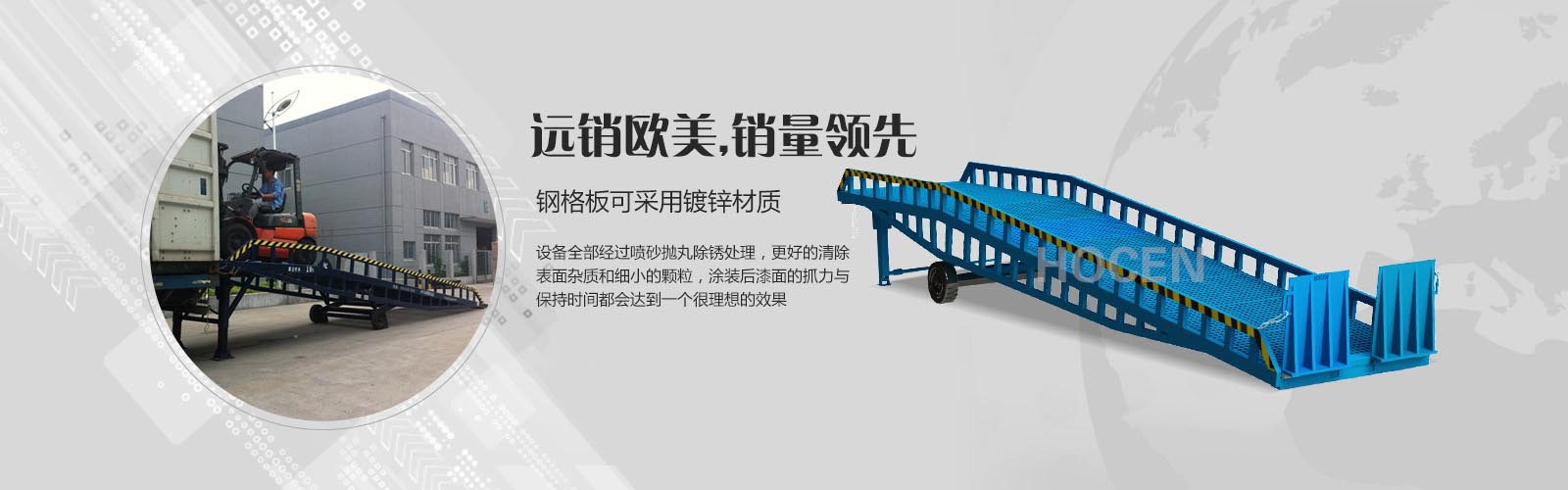 移動液壓登車橋是與叉車配合使用的貨物裝卸專用輔助設備,有了它,叉車能直接從地面進入汽車車廂內進行裝卸貨物的作業(yè)。